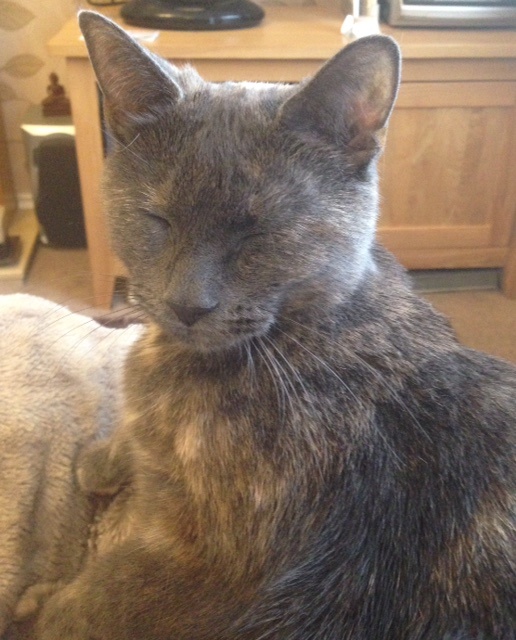 And rather than being a distraction, I find Sophia’s purring presence to be a benediction. As so many methods of meditation use mantras and chanting to engage in and enhance the experience, I am now using purring – focusing on the sound and the feel and receiving this little creature’s rapture, so to augment my own mental escape and ecstasy.