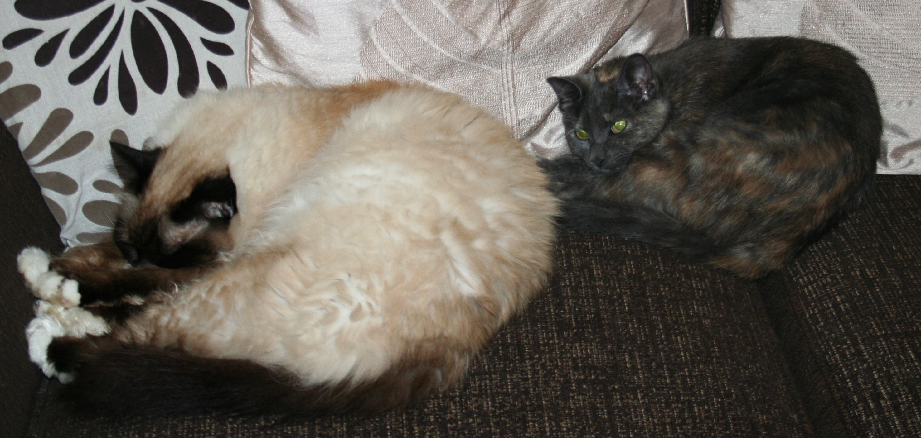 Often I’m not even aware that they have even entered the room, and then I look up and a quiet threesome of zizzing cats will just be there, insinuated, and all curled up, like a scatter of perfect tight commas, sharing the sofas with each other and with me.