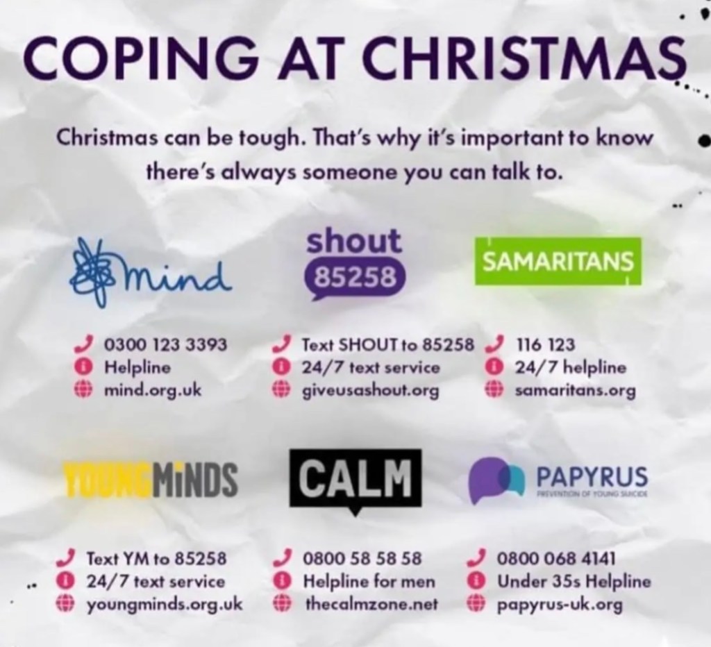 So please, put yourself first this Christmas… Be honest with those who surround you about how you feel and if you need help. And help comes in many forms, so please use and share the numbers shown at the beginning of this post if you or anyone you know is struggling at this or any other time of the year.