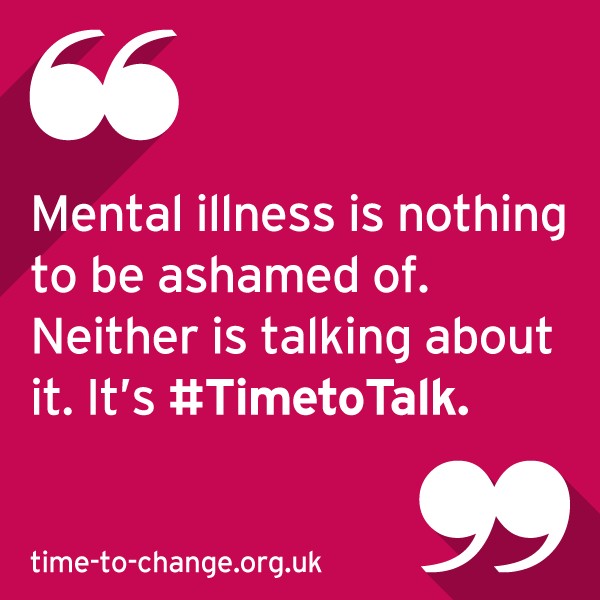 The motto of Time to Change’s Mental Health Day 2015 is “I want to live in a world where no one feels ashamed to talk about mental health”.